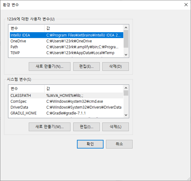 - 환경 변수 설정