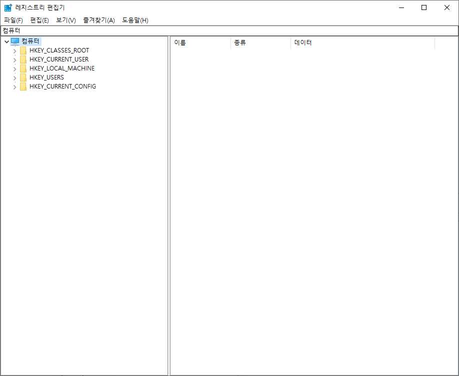 윈도우 검색창에서 regedit을 검색하면 레지스트리 편집기가 열립니다.