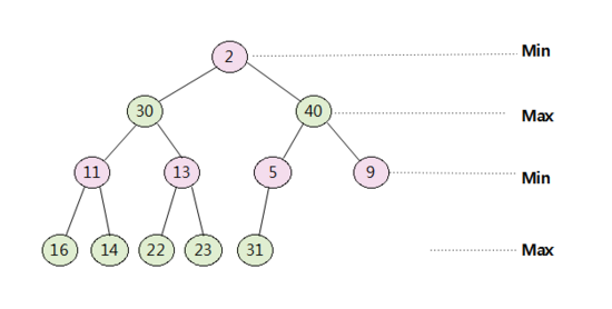 min-max heap은 min heap과 max heap의 특징을 동시에 가진 힙이다. 두가지의 힙을 합친 형태에 가깝다.