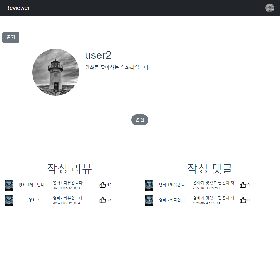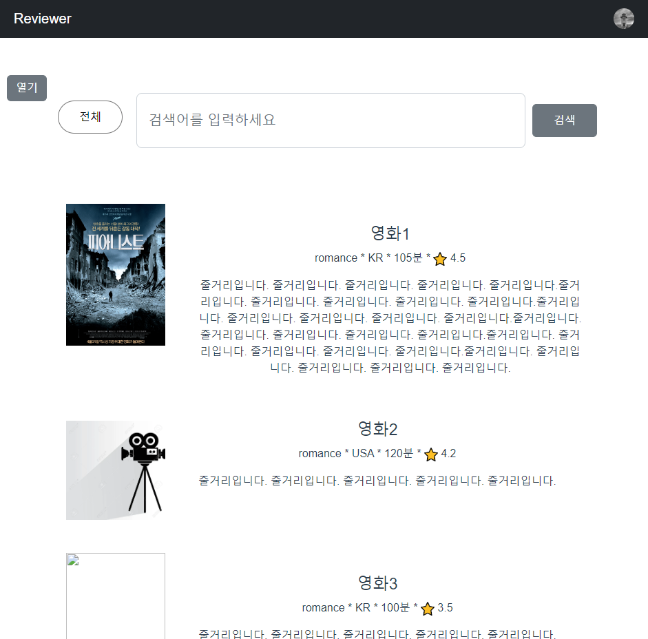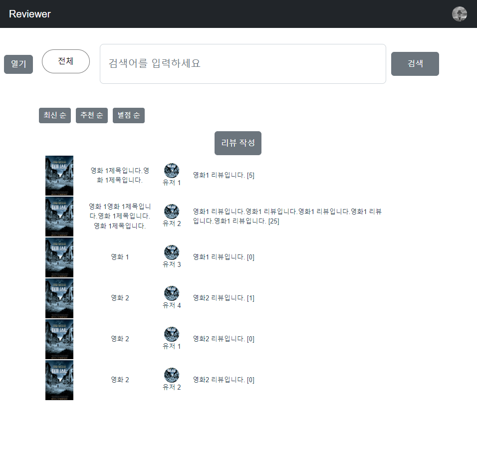 영화 리뷰를 조회할 수 있는 페이지이다.