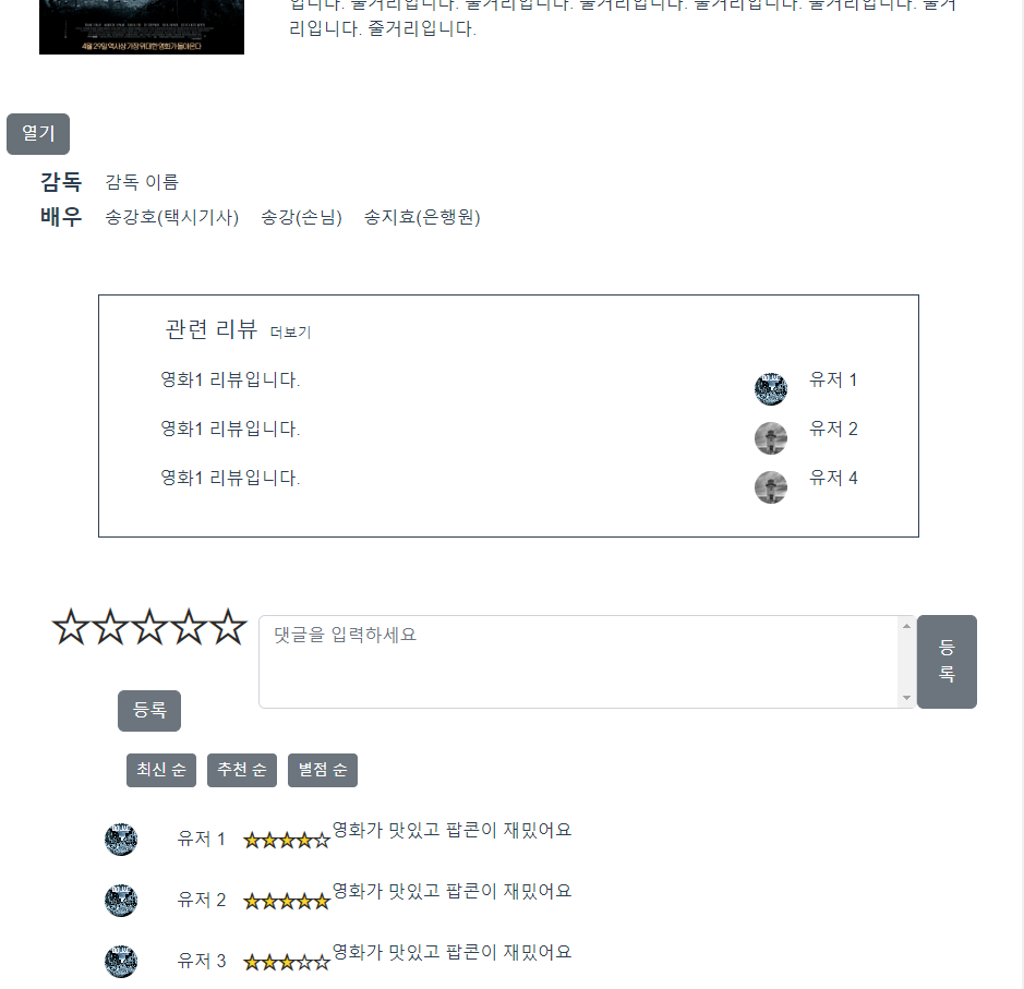 이전에 구현중이었던 영화 상세정보페이지의 아래 부분을 구현했다.