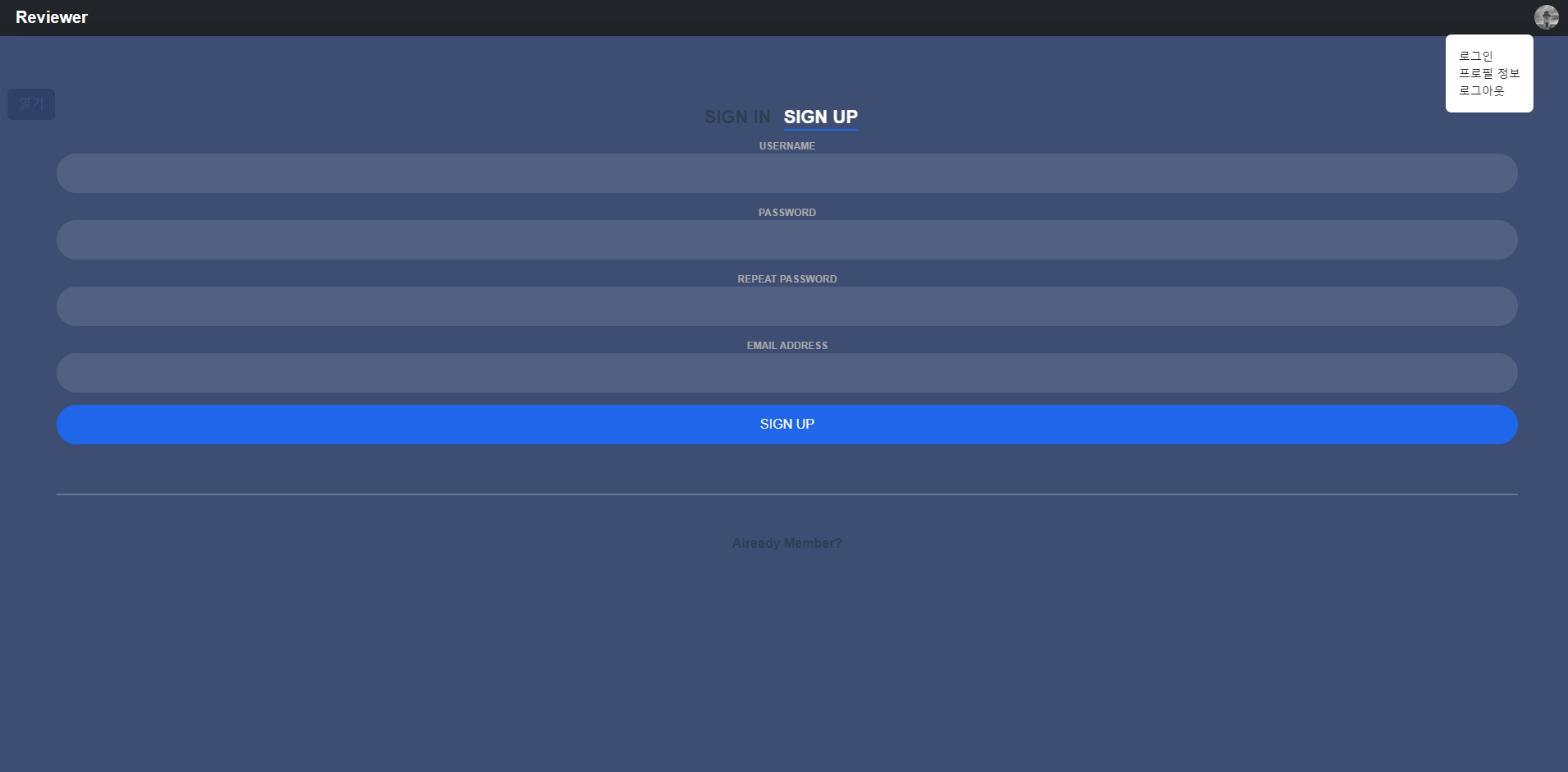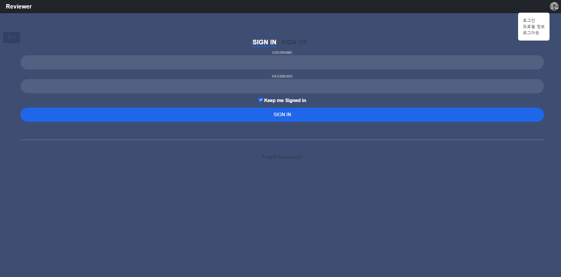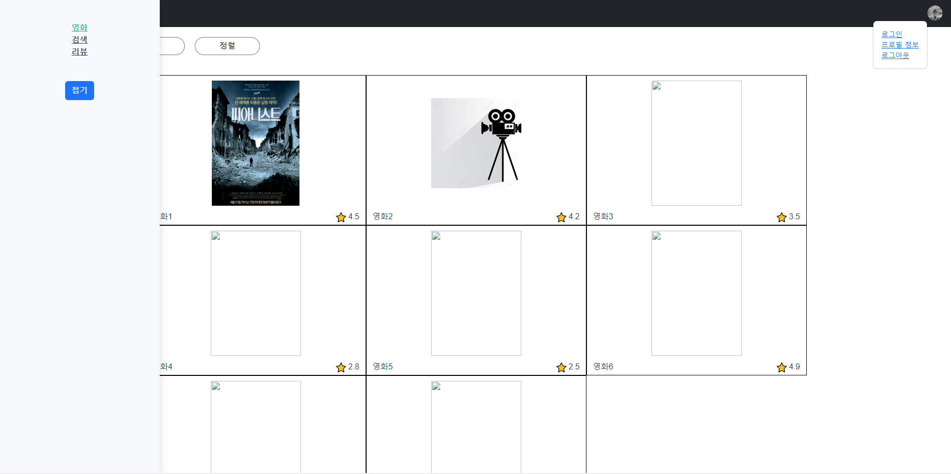 큰 메인메뉴인 영화, 검색, 리뷰로 이동할 수 있다.