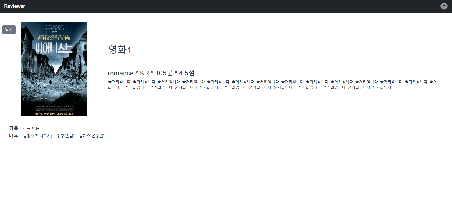 영화 버튼을 클릭했을 경우 볼 수 있는 영화 상세정보 페이지이다.