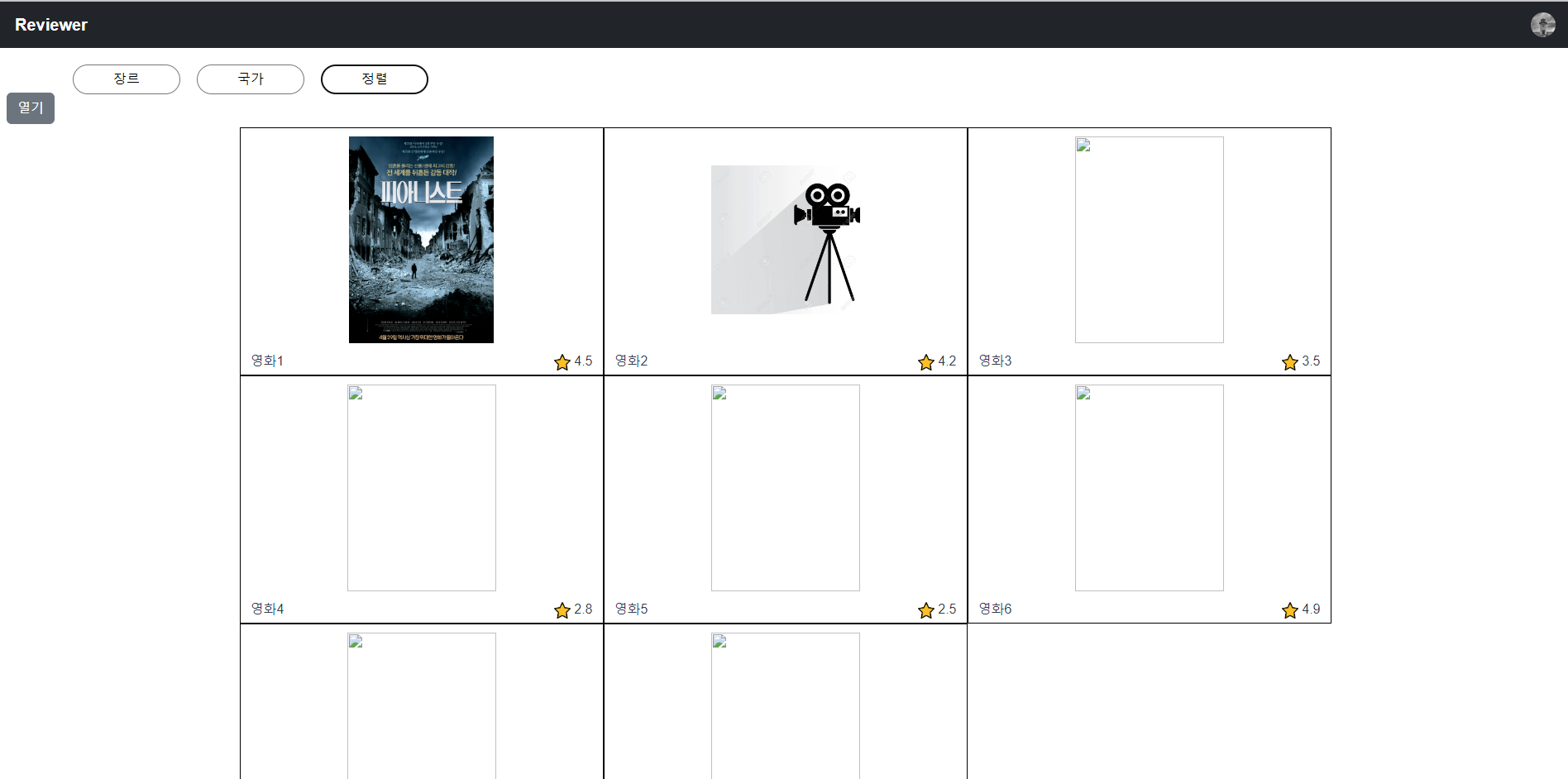 장르, 국가, 정렬 버튼은 아직 동작하지는 않는다.