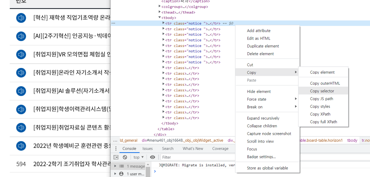 공지 크롤링으로 Selenium 배우기