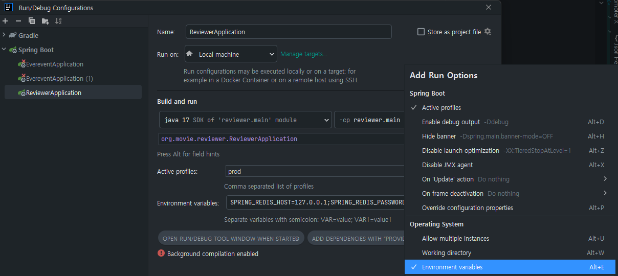 이제 실제 실행 환경에서 외부 프로퍼티 값을 넣어줘야 한다.